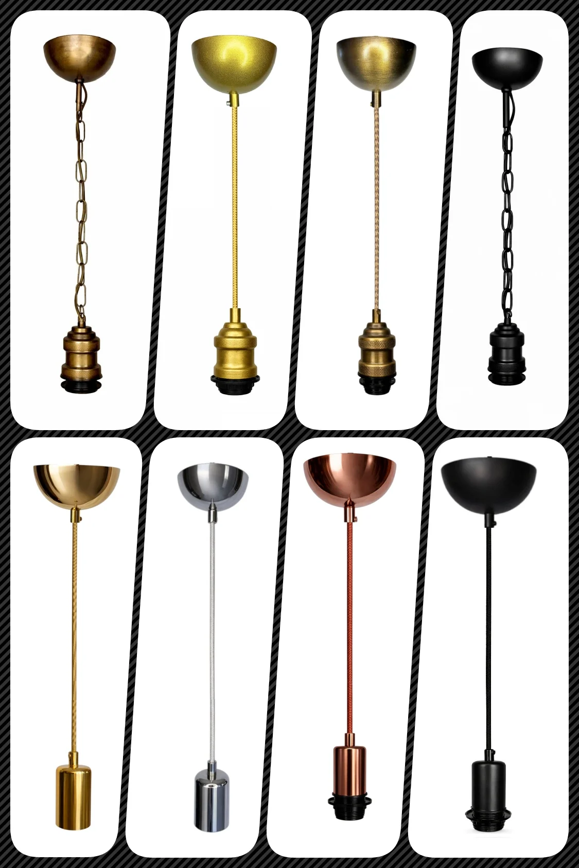 Dekoratif Sarkıt Avize Başlığı Takılabilir E27 Duy 70cm Metal Kumaş Örgü Kablo Krom Kaplama B10