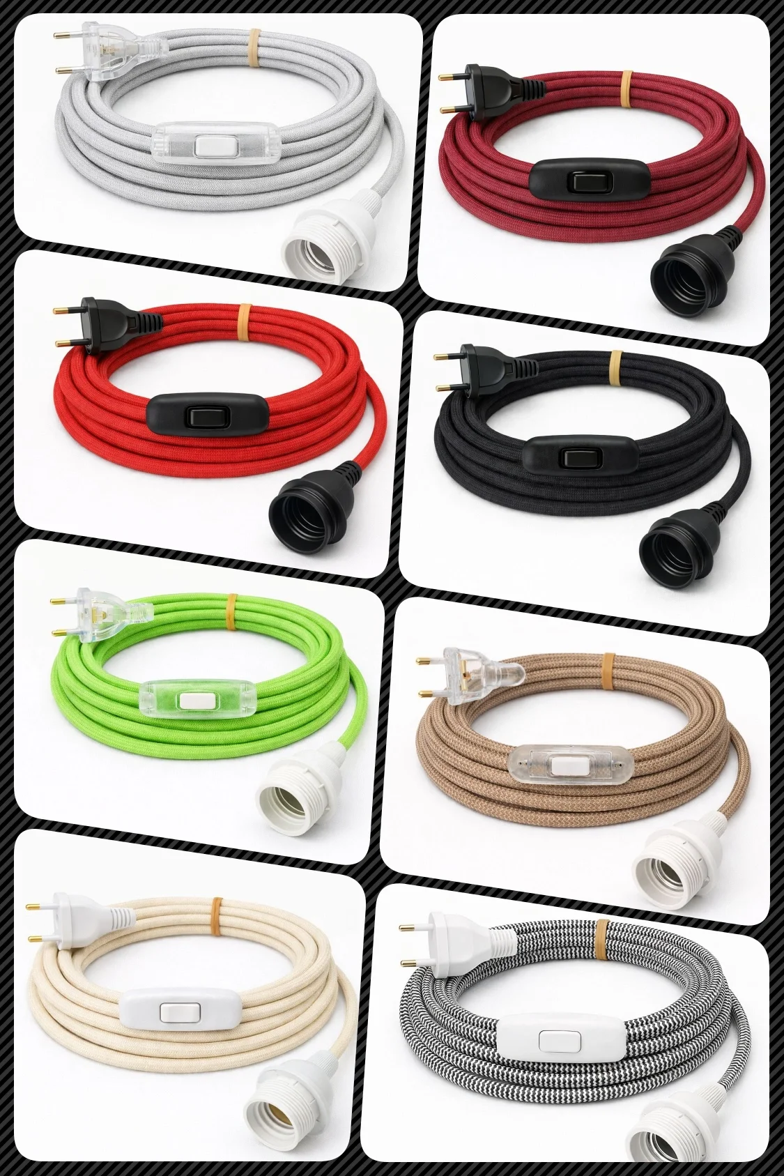 Dekoratif Sarkıt Avize Başlığı Takılabilir E27 Duy 70cm Metal Kumaş Örgü Kablo Bakır B08