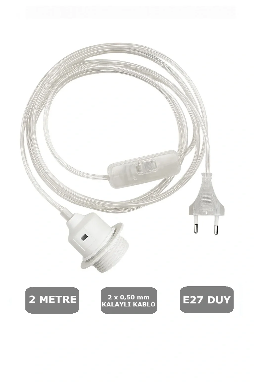 - 2 metre uzunluğundaki şeffaf kablo ile rahat kullanım sağlar.;