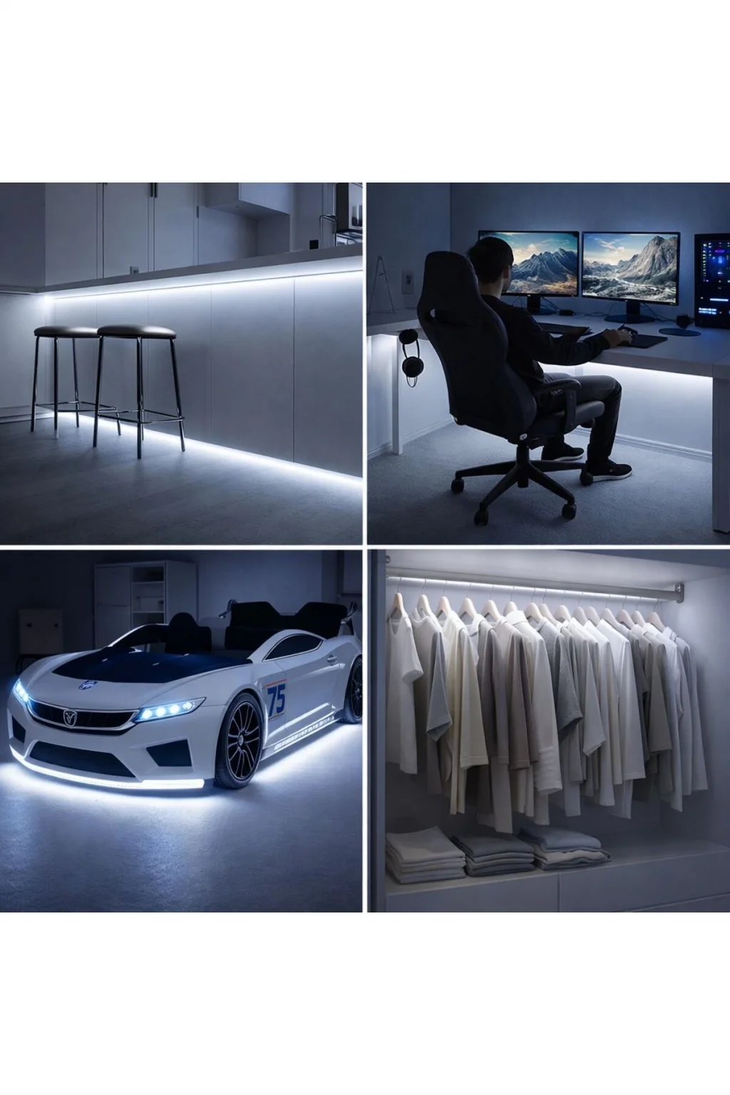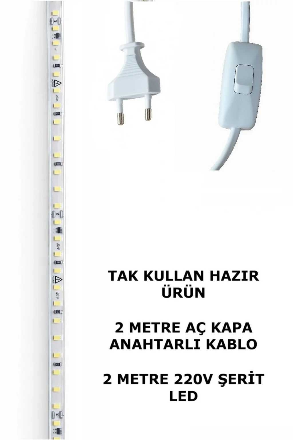 - 2 metre uzunluğunda esnek şerit LED, istediğiniz her alanda kolayca kullanılabilir.; - Tak ve çalıştır özelliği sayesinde herhangi bir montaj gerektirmez, pratik bir kullanım sunar.; - Arapuarlı kablolu tasarımı ile elektrik bağlantısı kolayca sağlanır, güvenli ve hızlı kurulum imkanı verir.; - Enerji tasarruflu LED teknolojisi ile düşük enerji tüketimi sağlar, uzun süreli kullanımda bile ekonomik bir aydınlatma çözümü sunar.; - Evinizin, ofisinizin veya özel alanlarınızın atmosferini değiştirmek için ideal bir aydınlatma seçeneğidir.;