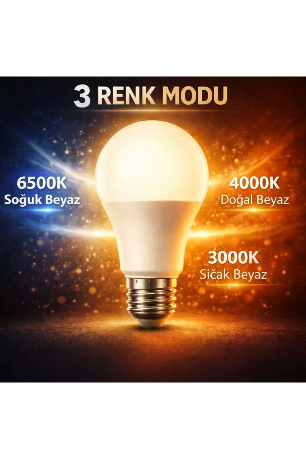 - Üç farklı renk modu (3000K, 4000K ve 6500K) ile her ortama uygun aydınlatma sağlar.; - 9W güç tüketimi ile enerji verimliliği sunar.; - E27 duy tipi sayesinde yaygın olarak kullanılan aydınlatma armatürleriyle uyumludur.; - Çok renkli ışık seçenekleriyle farklı atmosferler yaratma imkanı tanır.; - Renkler Aç Kapa Yapınca değişir