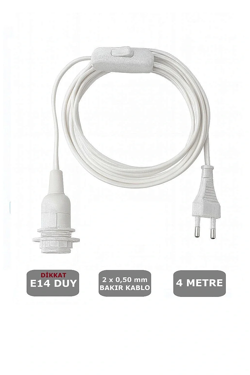 - 4 metre uzunluğundaki Arapuarlı (aç kapat anahtarlı) fişli abajur lambader duy, evinizin her köşesine kolayca uyum sağlar.;