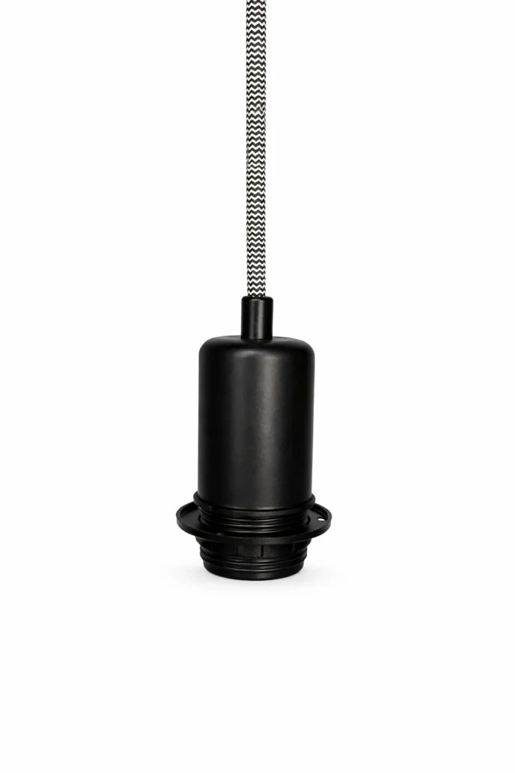 Dekoratif Sarkıt Avize Başlığı Takılabilir E27 Duy 70cm Metal Zigzag Kumaş Örgü Kablo Siyah B12