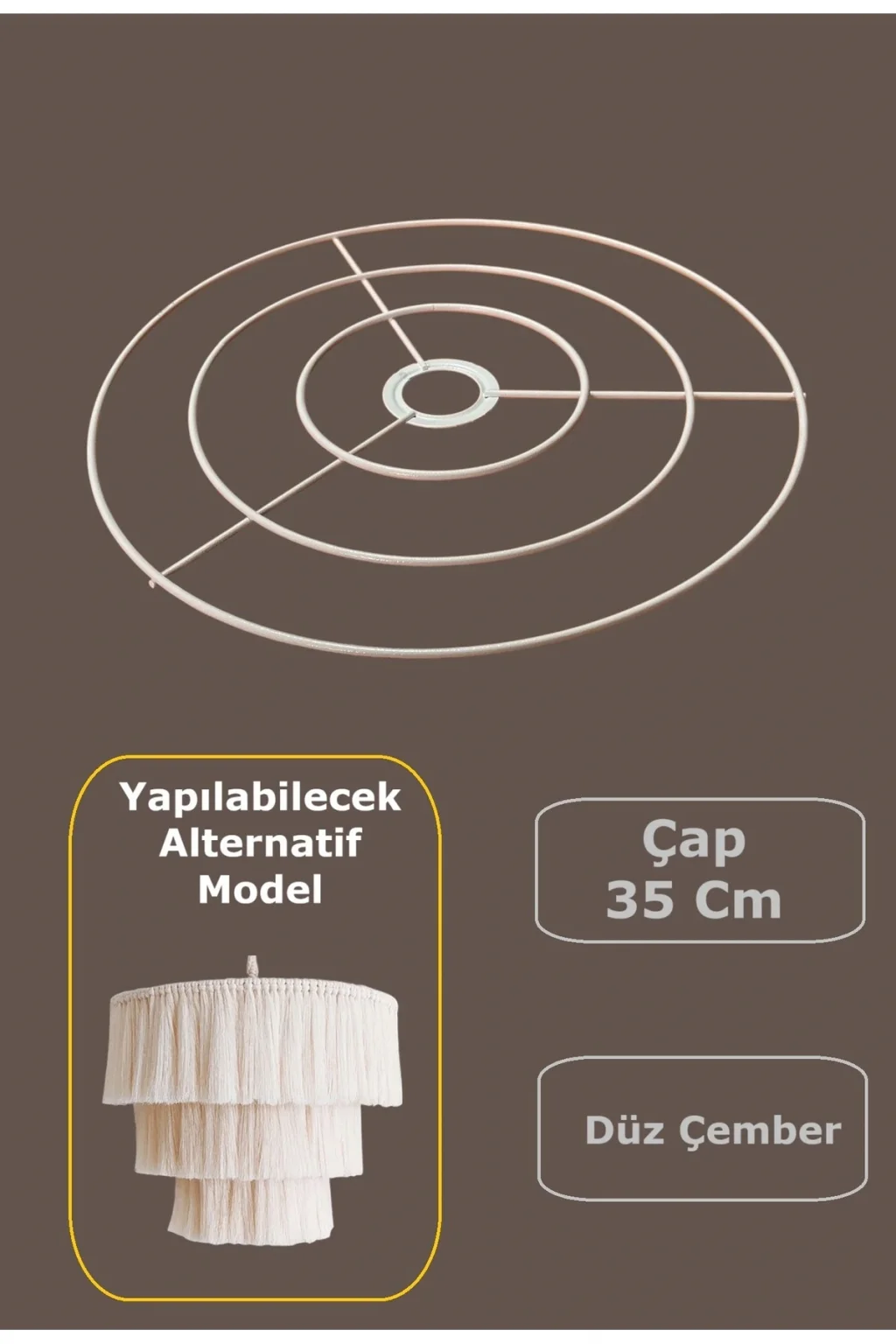 -35 cm çapında düz çember avize teli, modern ve şık bir görünüm sağlar.;