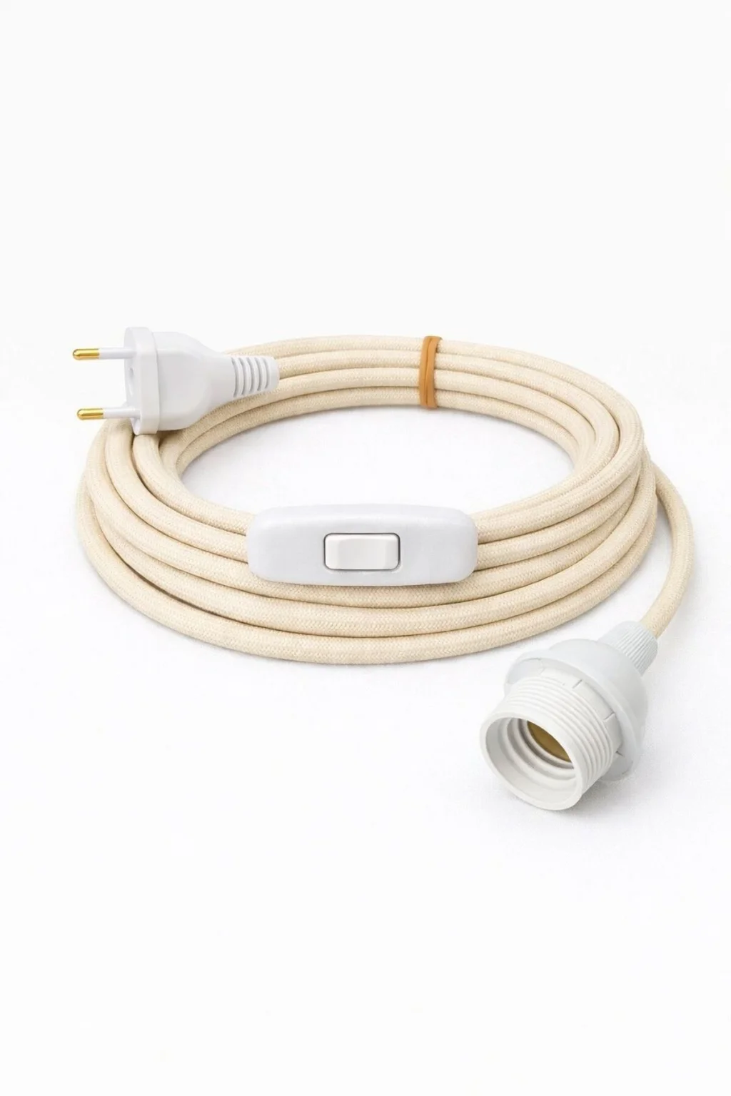 E27 Duy, Kumaş Örgü Kablolu, Arapuar Anahtarlı Fiş (2X0,50) Ekru 2 Metre