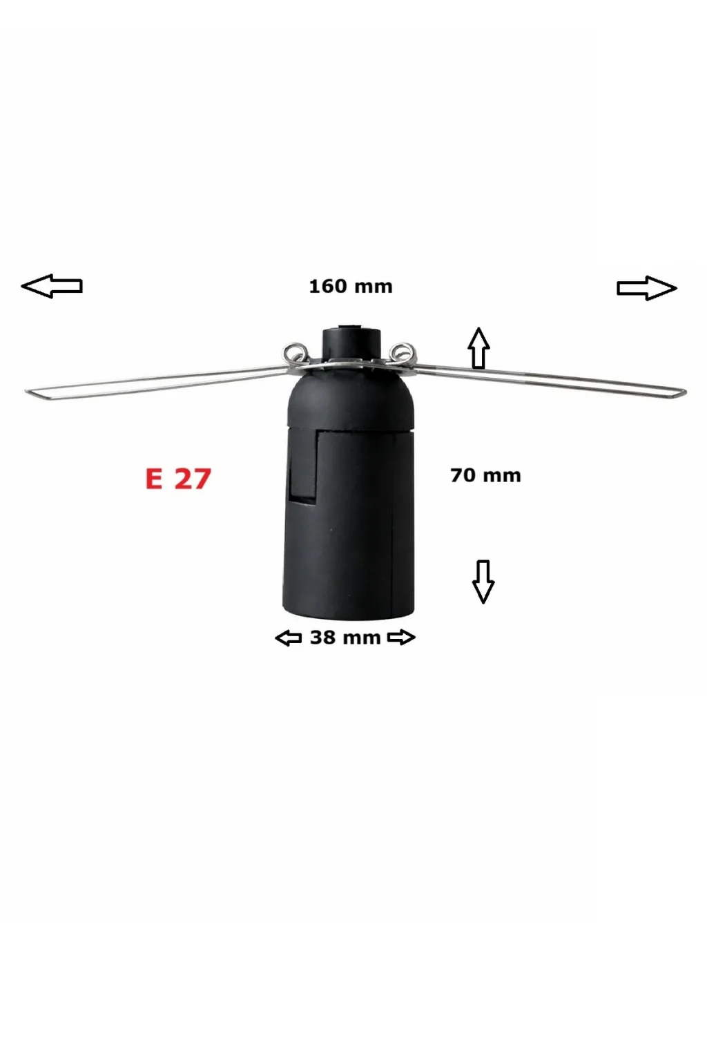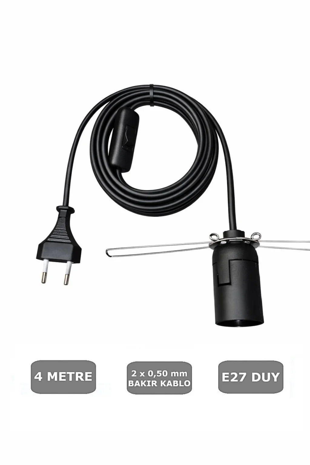 E27 Duylu 4 Metre Arapuarlı (Aç Kapat Anahtar) Yaylı Duy (2X0,50) (Siyah) 65W