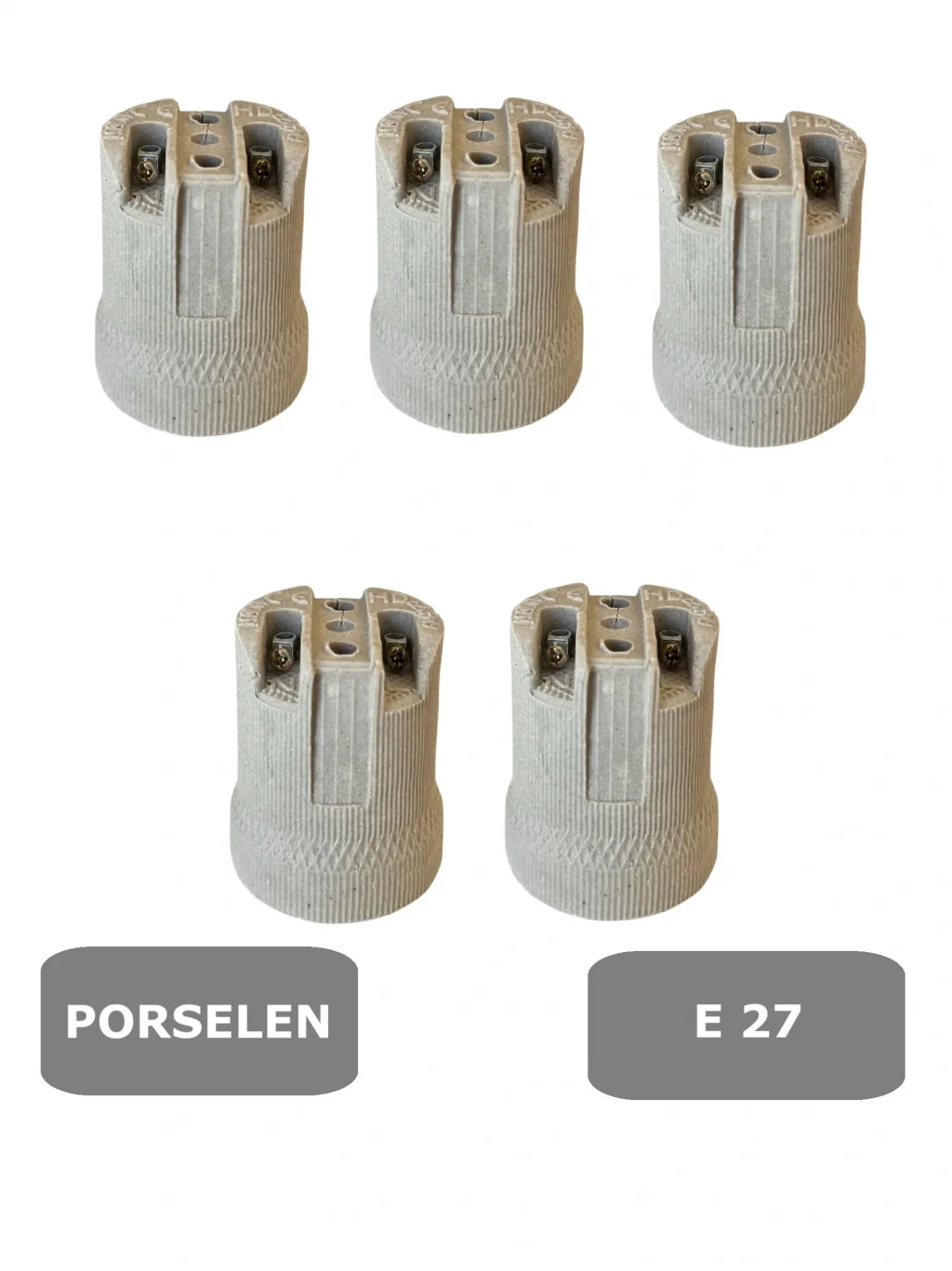 - E27 porselen duy, evinizin aydınlatma ihtiyaçlarını şık ve dayanıklı bir şekilde karşılar.;