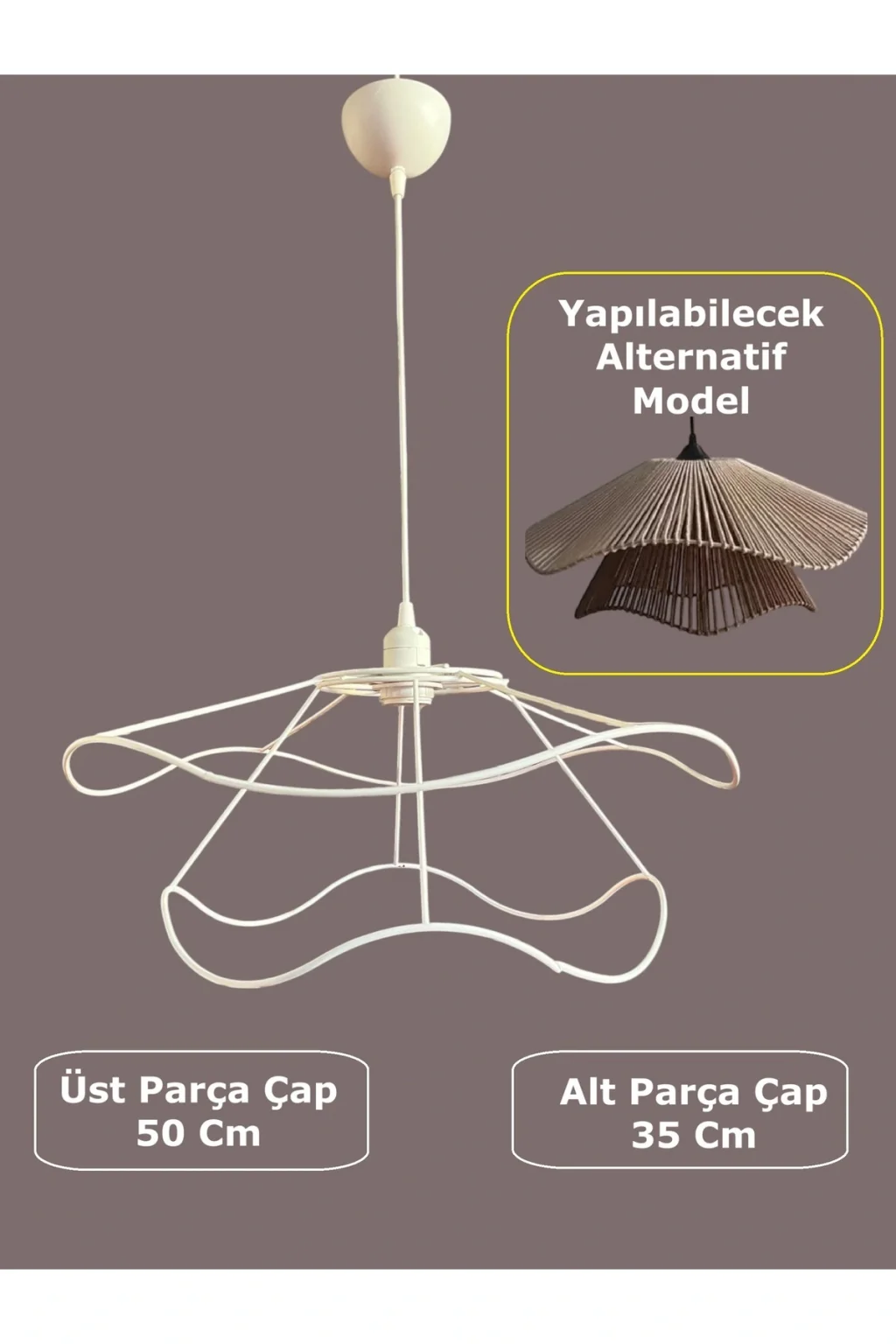 - 4 Mm daynıklı demir malzemeden üretilmiştir.; - 50x35 cm boyutlarındaki ince dalgalı avize teli, modern ve şık tasarımlar için idealdir.; - Beyaz statik boya ile kaplanmış iskeleti, dayanıklılığı artırarak uzun süreli kullanım sunar.; - Duy takımı dahil olduğu için ekstra aksesuar ihtiyacını ortadan kaldırır ve kolay montaj imkanı sağlar.; - 35 - 70 cm arasında ayarlanabilir yükseklik, farklı mekanlara ve dekorasyon tarzlarına uyum sağlar.;