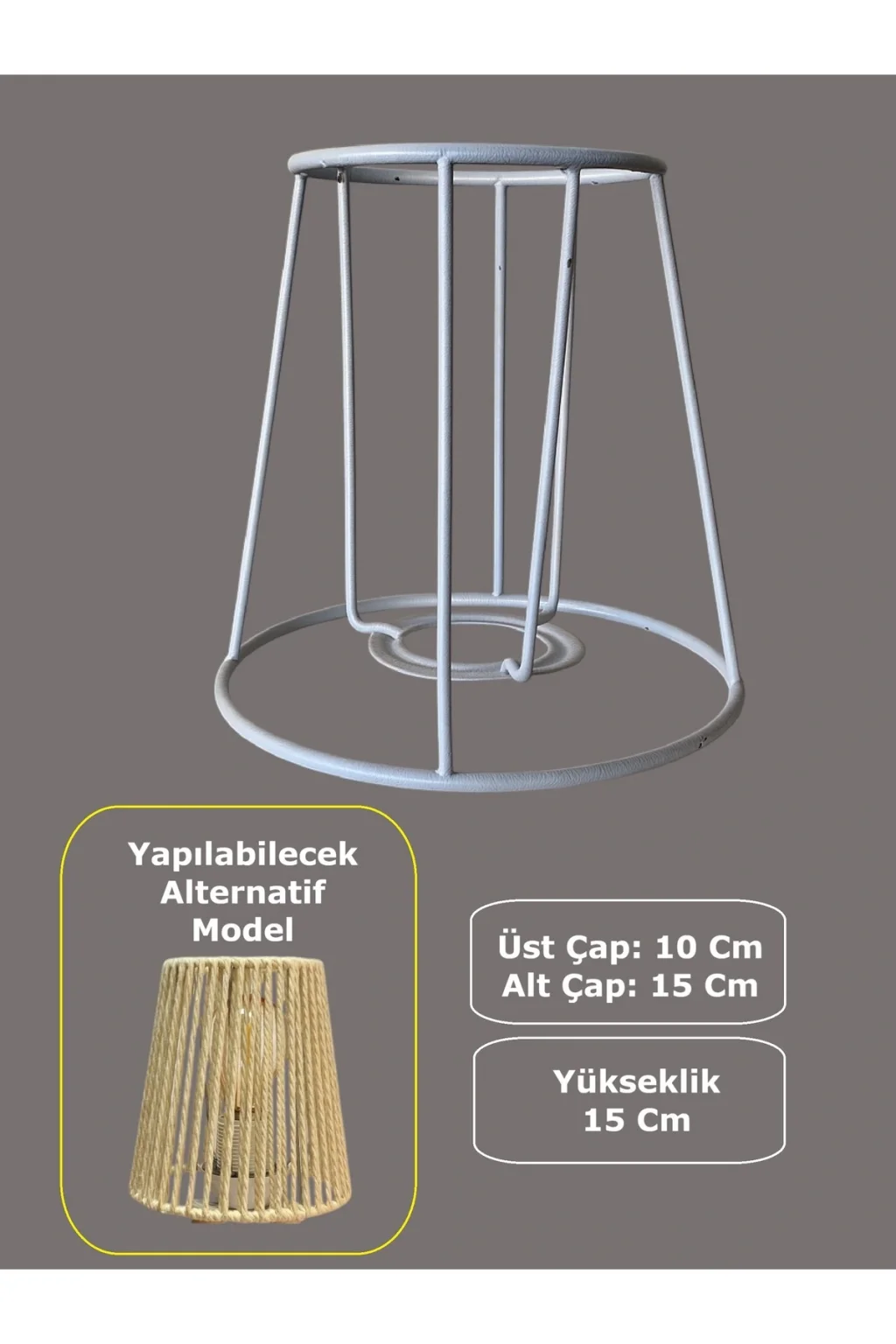 Konik Mini Abajur Teli ve Aplik Teli, İskeleti Beyaz Statik Boyalı E27 (15 Cm)