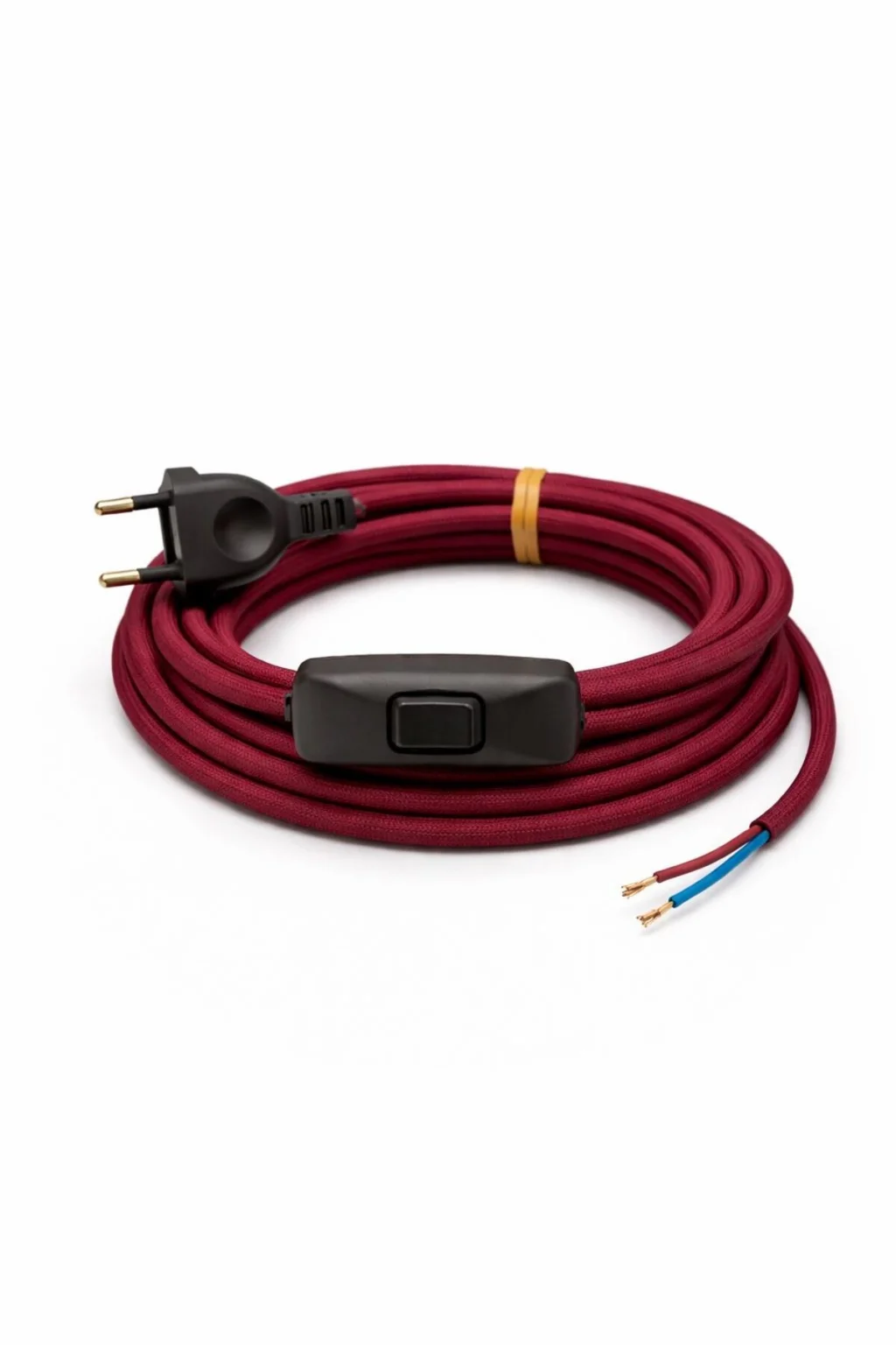 Kumaş Örgü Kablolu, Arapuar Anahtarlı Fiş (2X0,50) Bordo - 2 Metre