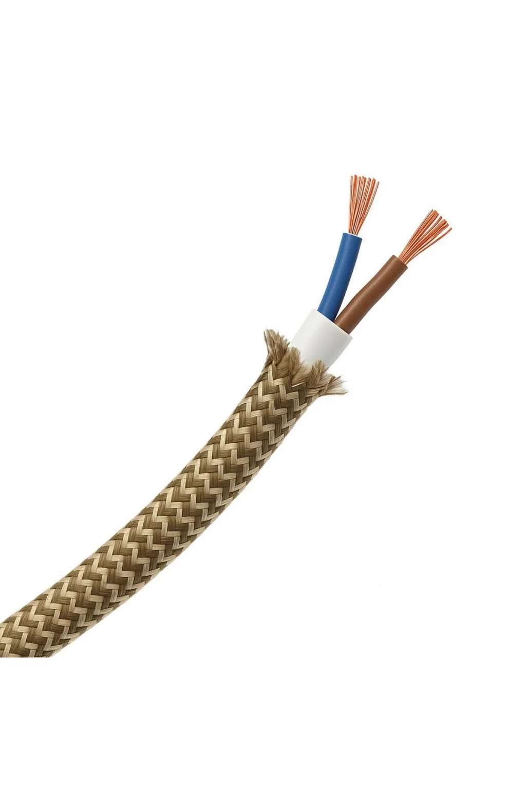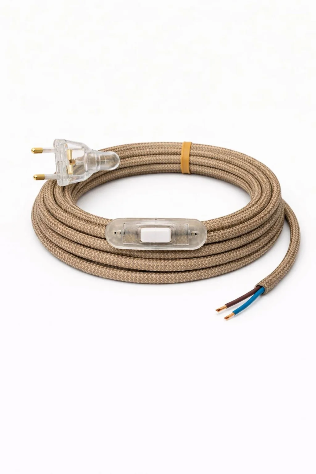 Kumaş Örgü Kablolu, Arapuar Anahtarlı Fiş (2X0,50) Haki-Kahve Zigzag - 2 Metre