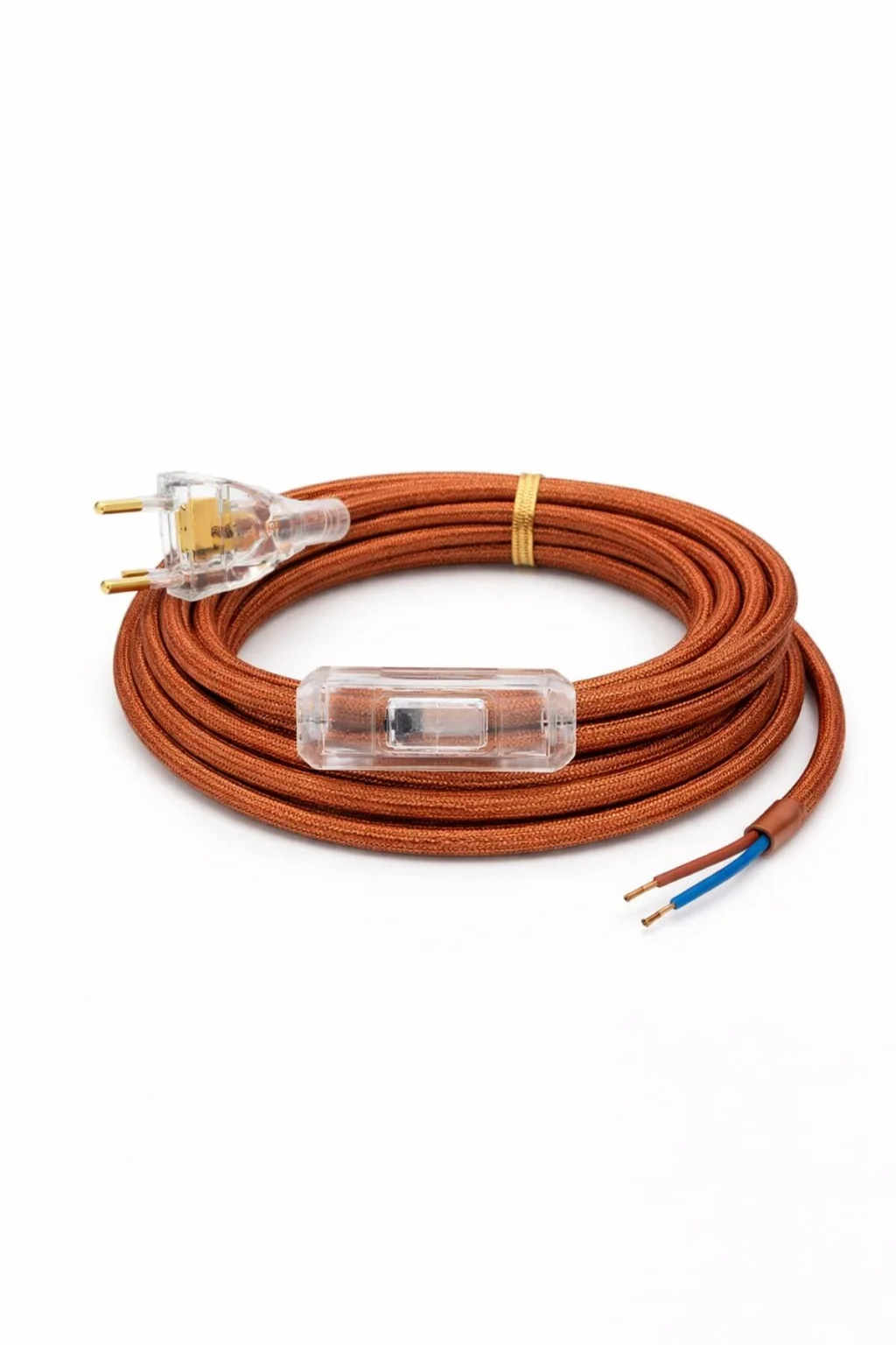 Kumaş Örgü Kablolu, Arapuar Anahtarlı Fiş (2X0,50) Simli Bakır- 2 Metre