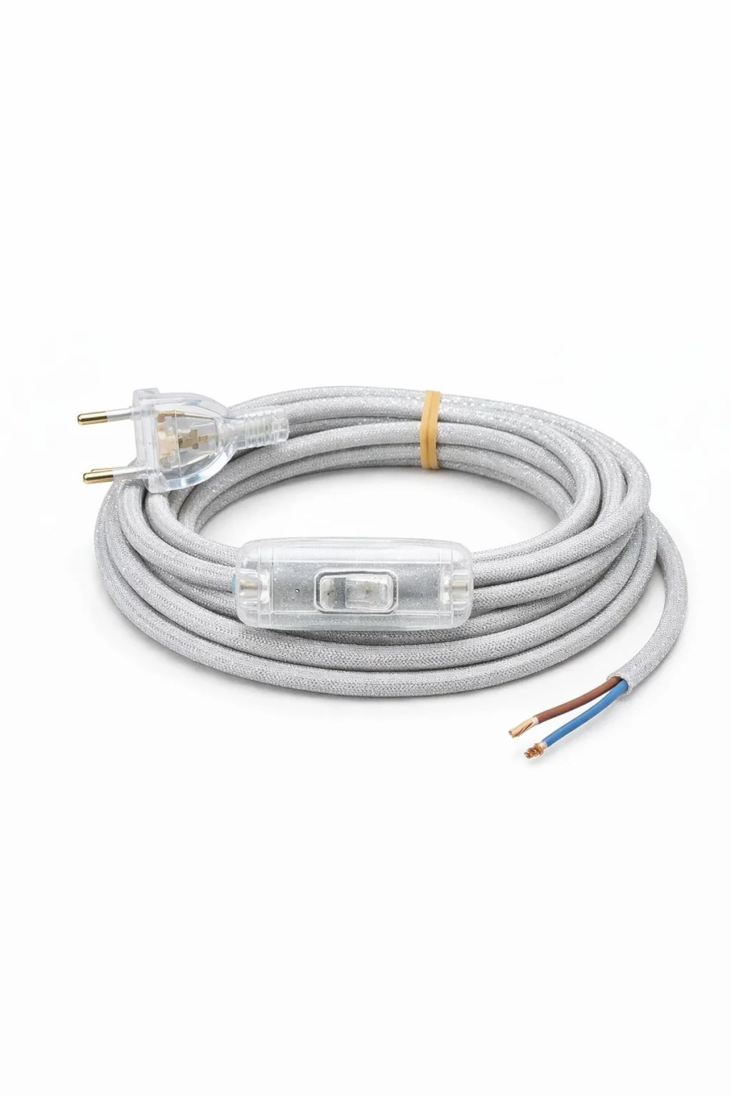 Kumaş Örgü Kablolu, Arapuar Anahtarlı Fiş (2X0,50) Simli Gümüş - 2 Metre