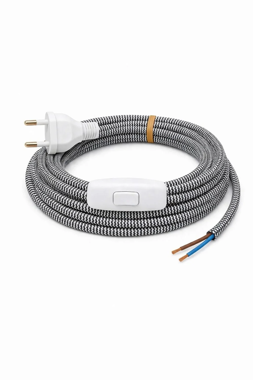 Kumaş Örgü Kablolu, Arapuar Anahtarlı Fiş (2X0,50) Siyah-Beyaz Zigzag - 2 Metre