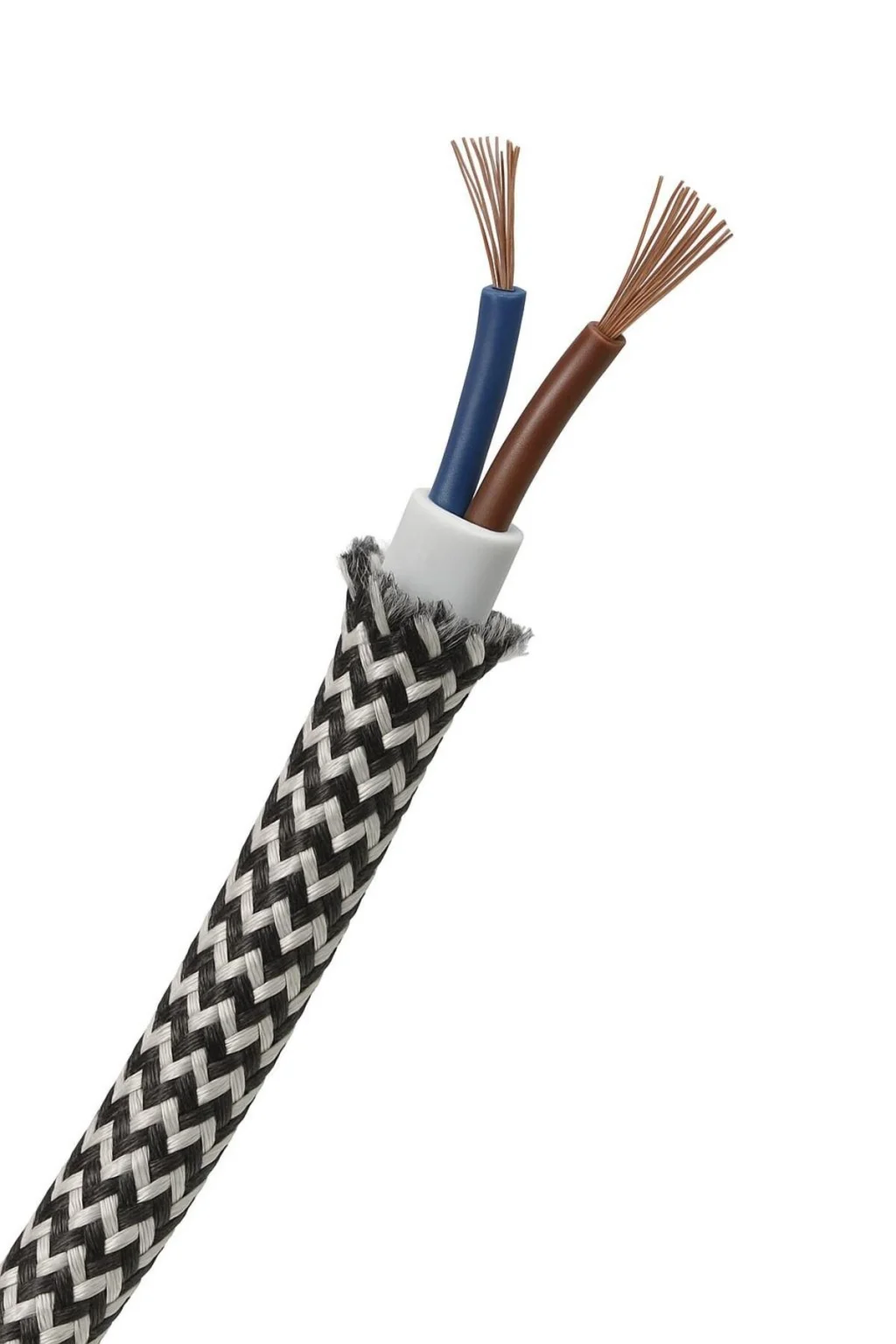 - Kumaş örgülü tasarımı ile dayanıklılığı artırılmış kablo yapısı.;