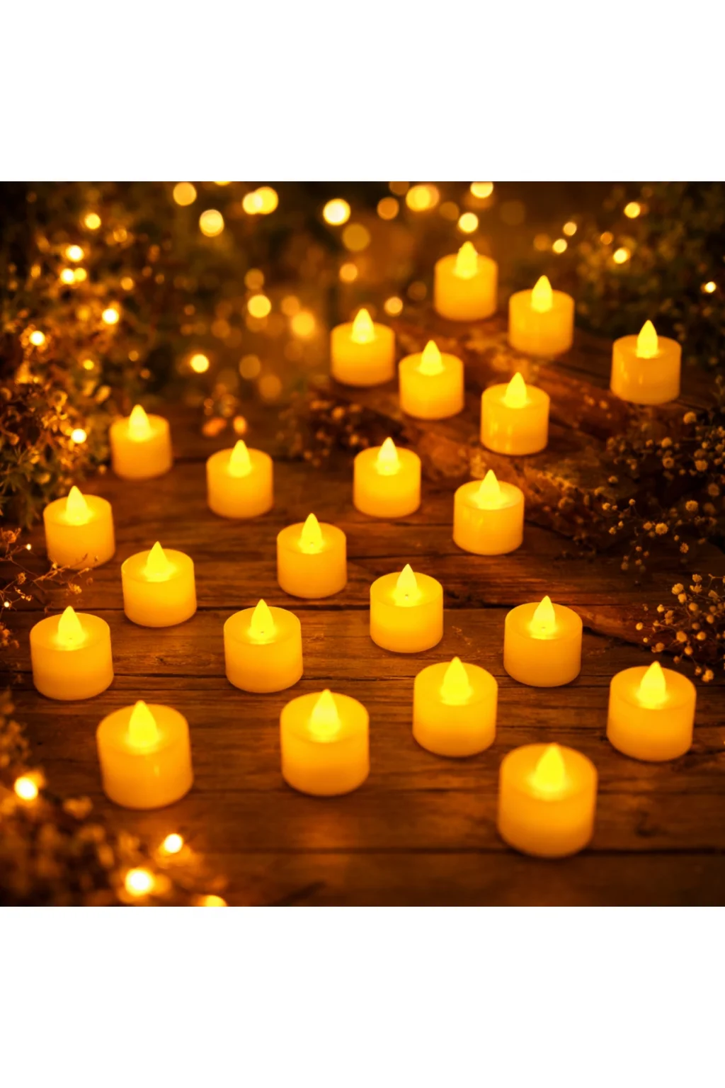 - Ortalama 36 saat pil ömrü vardır.; - Tealight pilli led mumlar, 24 adet sarı ışık veren ve pil dahil olmak üzere tam set olarak sunulur.; - Pilli led mumlar, enerji tasarrufu sağlayan ve uzun ömürlü kullanım imkanı sunan teknolojiye sahiptir.; - Sarı ışık veren bu mumlar, sıcak ve davetkar bir atmosfer yaratmak için idealdir.; - Tealight mumlar, pil dahil olduğu için ekstra pil ihtiyacını ortadan kaldırır ve kolay kullanım sağlar.; - CN menşeili bu ürünler, kalite standartlarına uygun olarak üretilmiştir ve güvenle kullanılabilir.;